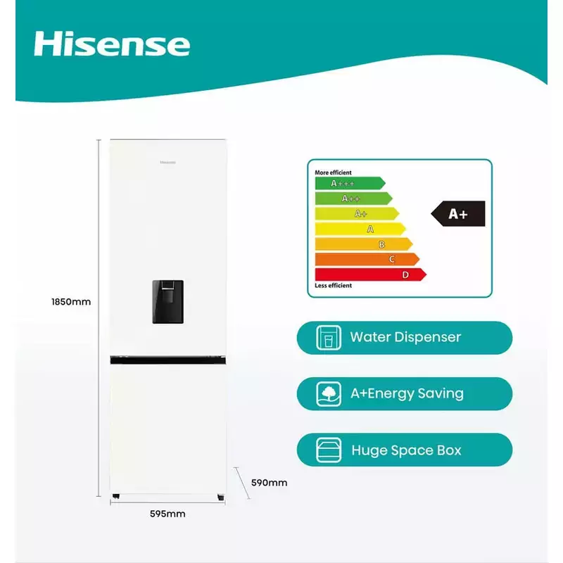 Hisense Refrigerator 350L Bottom Freezer A+ Energy Efficiency Class, Non Plumbed Water Dispenser, Reversible Door White & Pink H450BDP-WD